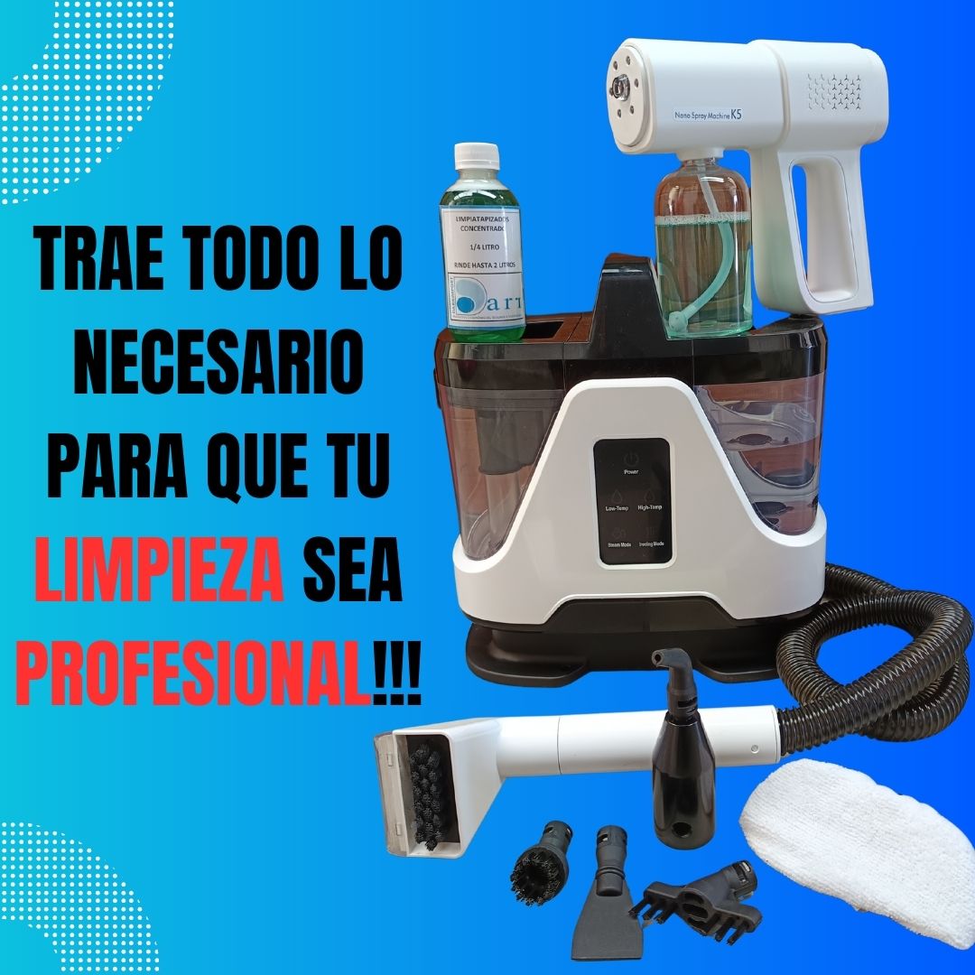 ASPIRADORA PROFESIONAL CON MÁQUINA PARA LIMPIEZA A VAPOR + PULVERIZADOR AUTOMÁTICO + 1/4LT DE LIMPIATAPIZADOS CONCENTRADO.